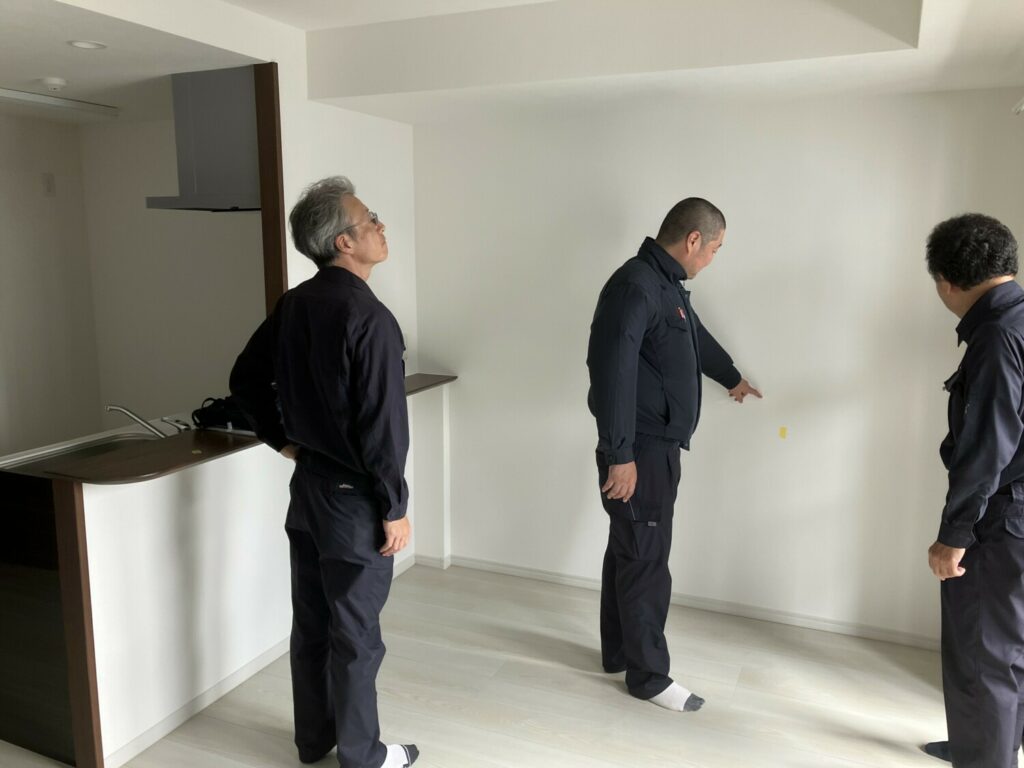竣工前の社内検査では、複数人で建物内を巡回し、