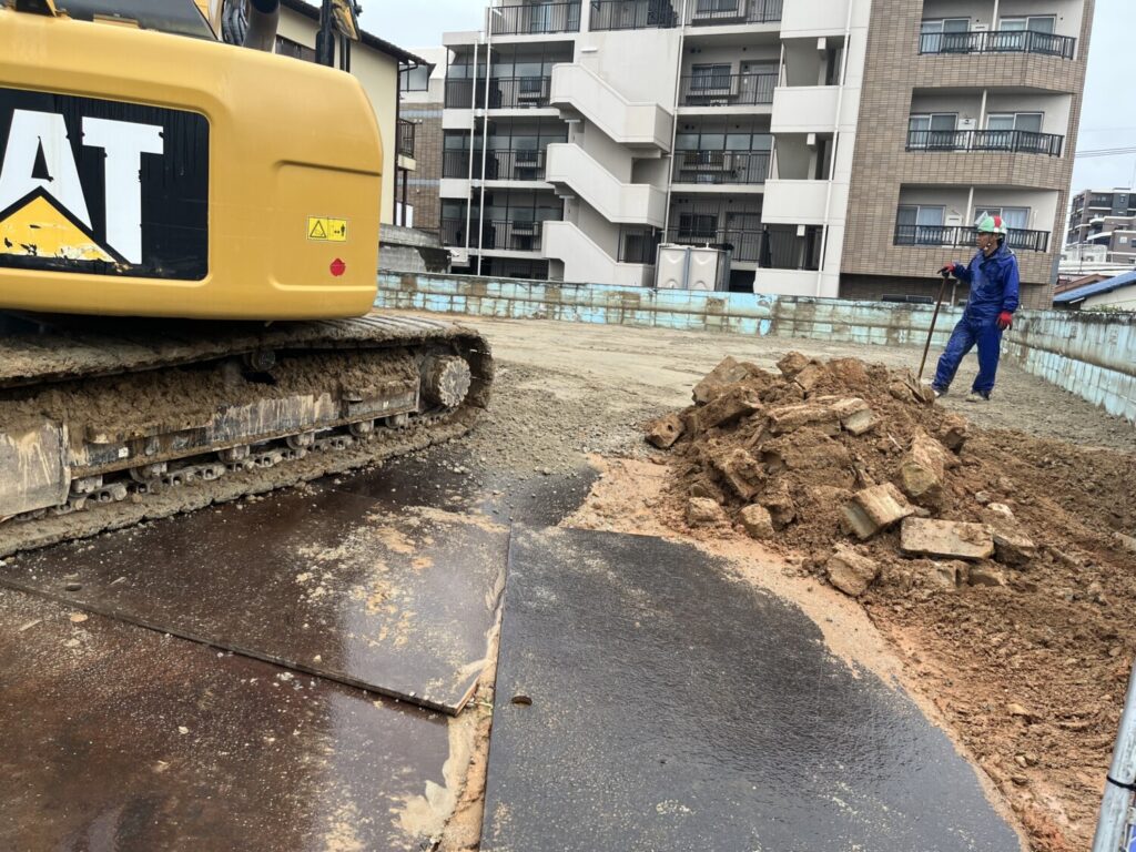 こちらは現在土工事中で、盛土搬出をしているところです。