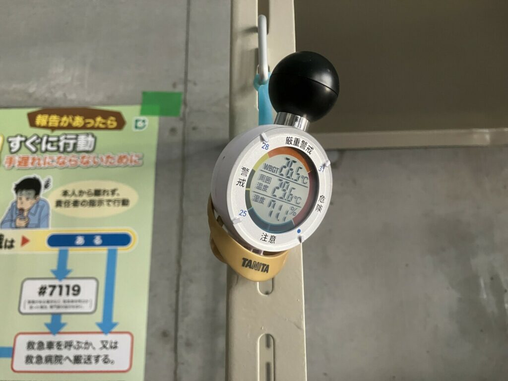 また、黒球式熱中症指数計にて現場の熱中症予防指針を示しています。