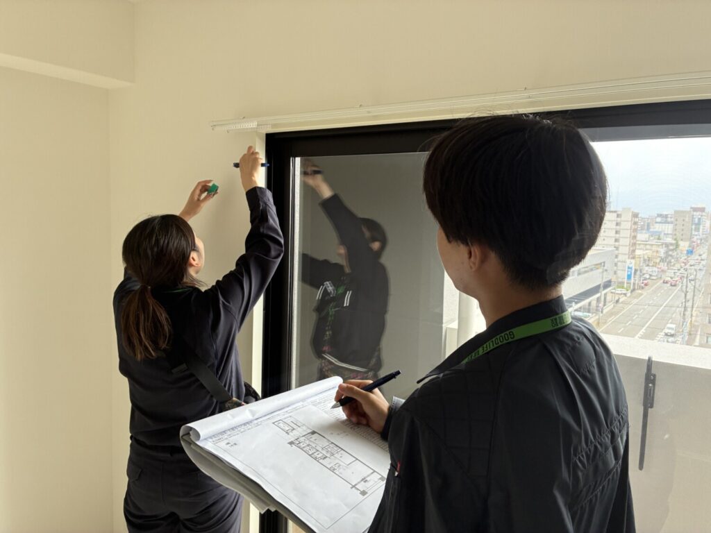 2025.08.22 スタッフ日記 社内検査@上牟田3丁目 おはようございます😊皆さまお盆はどのように過ごされましたか? 私は前半実家に帰省し、後半は天気がいい日に福岡の志賀島に行ったり、ラーメンを食べに熊本に行ったりとゆったり休暇を過ごすことができました😌✨ さて、今回は2棟の社内検査の様子をご紹介します。 こちらは福岡市博多区上牟田3丁目に2棟建築中のマンションで、近くには山王公園があり、その他にスーパーや飲食チェーン店等があります。10階建てと9階建ての2LDKのお部屋で、9月12日(金)から入居開始いたします‼️
