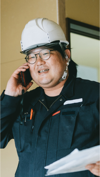 現場監督として必要とされるのは、マネジメント力です。円滑に仕事を進めて、期限内に現場をおさめるためには、いかに人が気持ちよく動いてくれるかを見極めて、行動することが、最も必要な能力だと考えます。幅広い年齢の人が集まる現場なので、お願いしやすい関係性を築いていけるように心がけています。普段から話しやすい関係性を築くために、仕事以外のことでも雑談できる現場にしています。