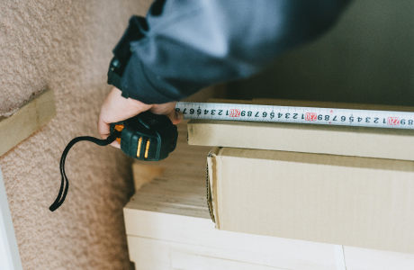 事務所で発注かけ作業。工程を見ながら、ジャストインタイムで現場に建材が入るよう発注をかけられる状態に調整します。